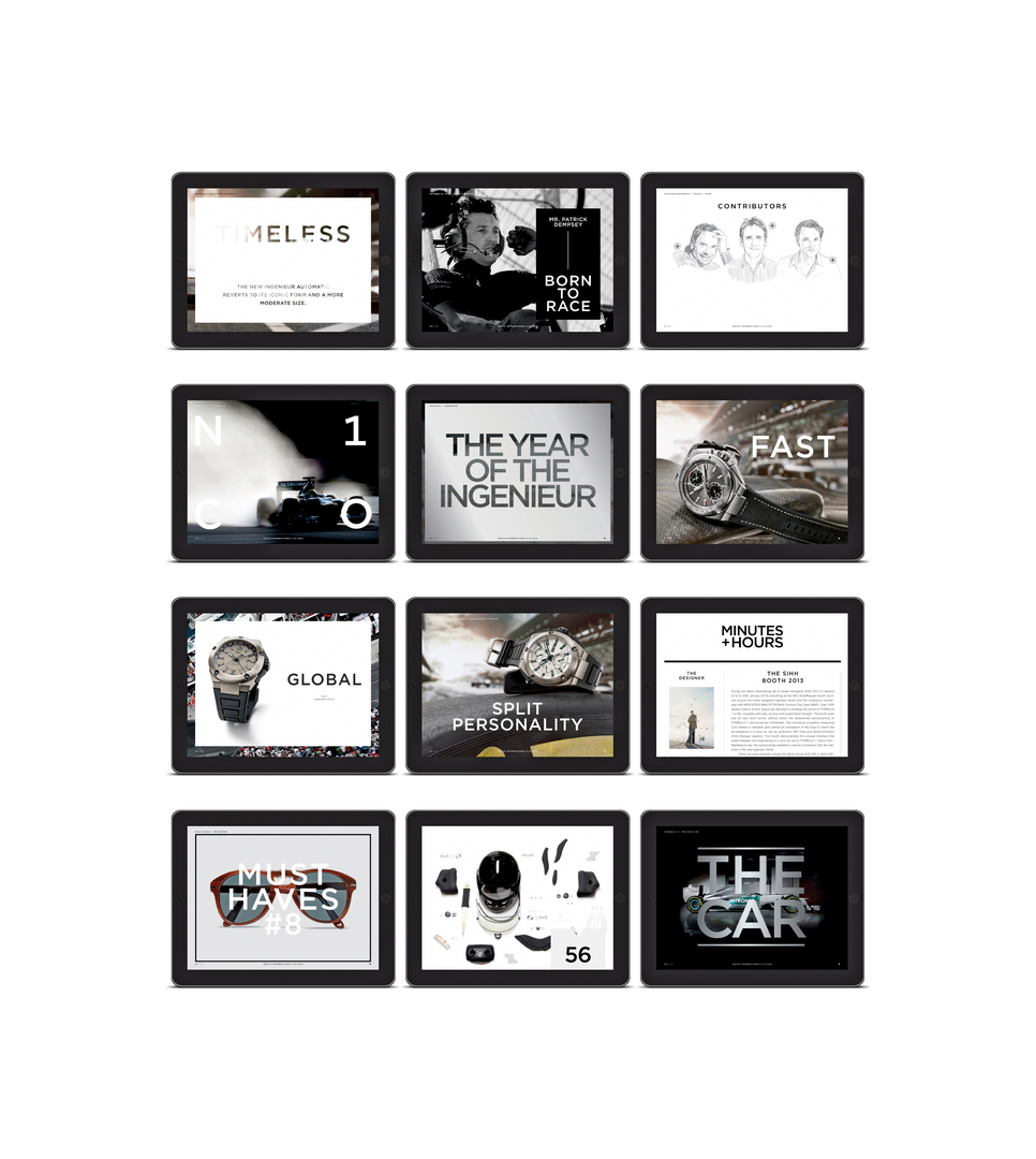 Watch International is the magazine of the Swiss watch manufacturer IWC Schaffhausen. Revolving around timepieces, watchmakers and renowned personalities, the iPad version of the magazine goes beyond the paper edition. Interactive features, as well as additional material, bring Watch International to life. Different layouts and content in both portrait and landscape modes lend the magazine a certain playfulness, as does the use of parallax scrolling. The interface invites users to explore the content, without them ever feeling lost.