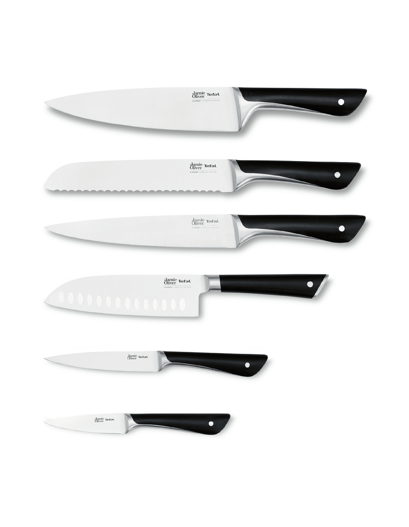 This new set of convenient kitchen knives was developed with the assistance of Jamie Oliver. The six-piece set is designed to help tackle common kitchen tasks. Each blade is made from high-quality stainless steel and subjected to an ice-hardening process that ensures long-lasting cutting performance. The well-balanced knives are stored in a decorative block made of responsibly sourced acacia wood.