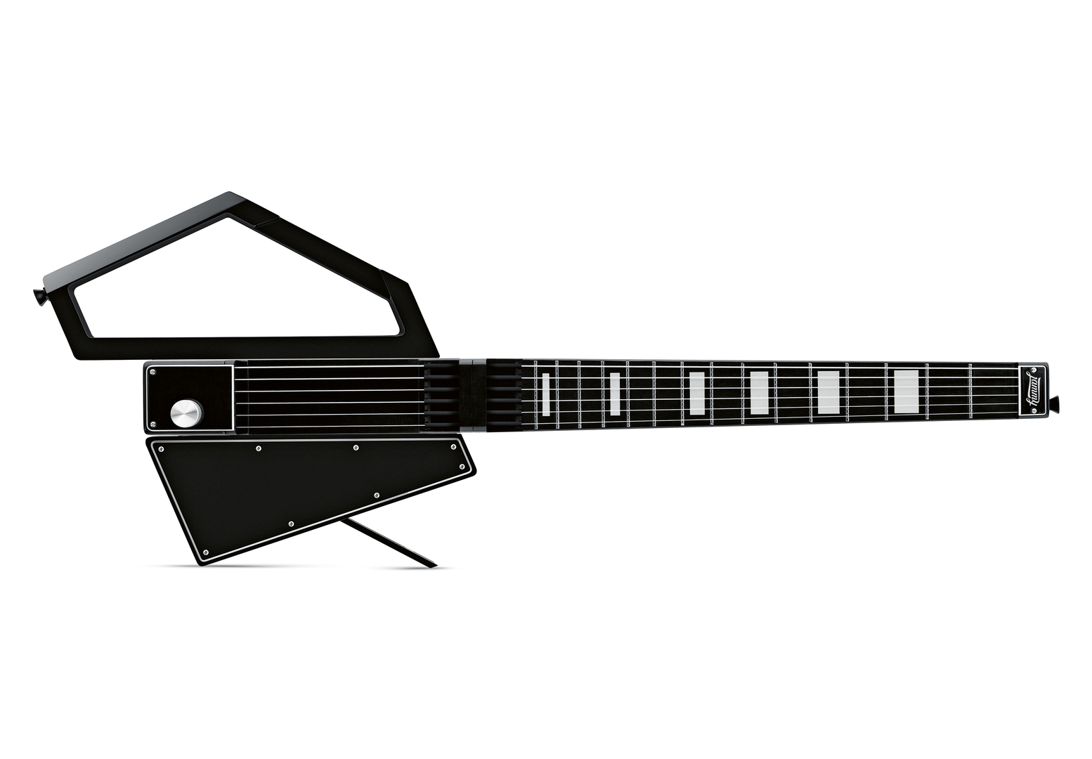 Jammy Guitar is a MIDI controller with strings that has been specially designed for music producers, songwriters and guitar players who need a full-featured, portable instrument for practising anywhere. The modular construction with removable neck and the low weight of the Jammy Guitar ensure high transportability. The MIDI controller combines innovative technology with the feel of real, analogue strings. The futuristic-looking design is a tribute to classic electric guitars.