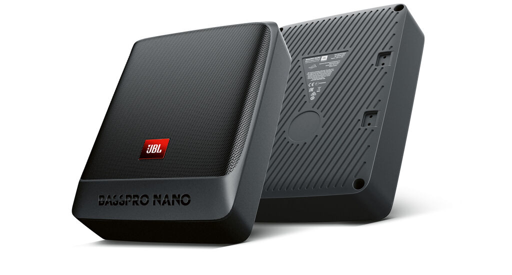 JBL BassPro Nano is an extremely small, active subwoofer that has been specially developed to fit into a vehicle’s nooks and crannies that would be too tight for other active subwoofers. The robust casing, made from die-cast aluminium, is finished in durable, textured matt black, so it blends with any interior. The integrated 100 watt amplifier delivers powerful bass and is extremely efficient, drawing minimal power from the vehicle battery.