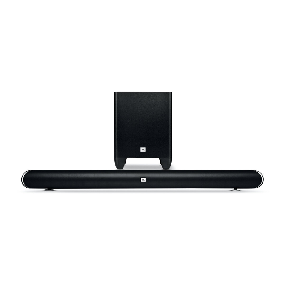 The JBL Cinema SB250 2.1 home cinema system provides surround sound in an elegant and slim housing. It connects wirelessly to a compact subwoofer and, with a single cable, also to the television unit. It can learn to control any TV remote volume so that only one remote control is required when movies are played. Per switch, sound can be adjusted according to the placement of the system, be it on the wall or a table.