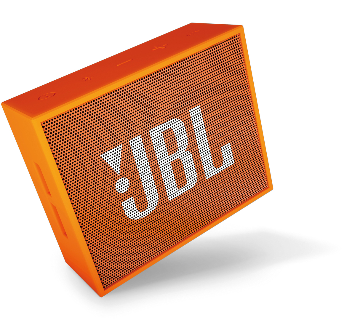 The JBL GO is a portable full-range speaker with Bluetooth connectivity, AUX connector and hands-free functionality. Due to its compact dimensions, it fits into any hand. With the integrated carabiner hook, the speaker can be attached to bags or articles of clothing. Its buttons are located along the top surface so as to be easily reached and operated with the thumb. The speaker is available in eight vivid colours.