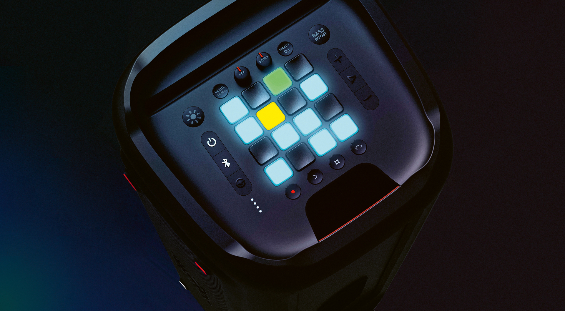 The JBL Partybox 1000 is a powerful party speaker that combines the sound quality of JBL with a dynamic full-panel light show, which is simply activated when users plug in their microphone or guitar. Users can also stream their playlists via Bluetooth or from a USB flash drive. A DJ pad on the top surface allows users to play drums, guitar or piano, as well as to record and to loop on the fly. The product offers an experienced shift from player / listener to a music co-creator, from a mere speaker to a musical instrument.