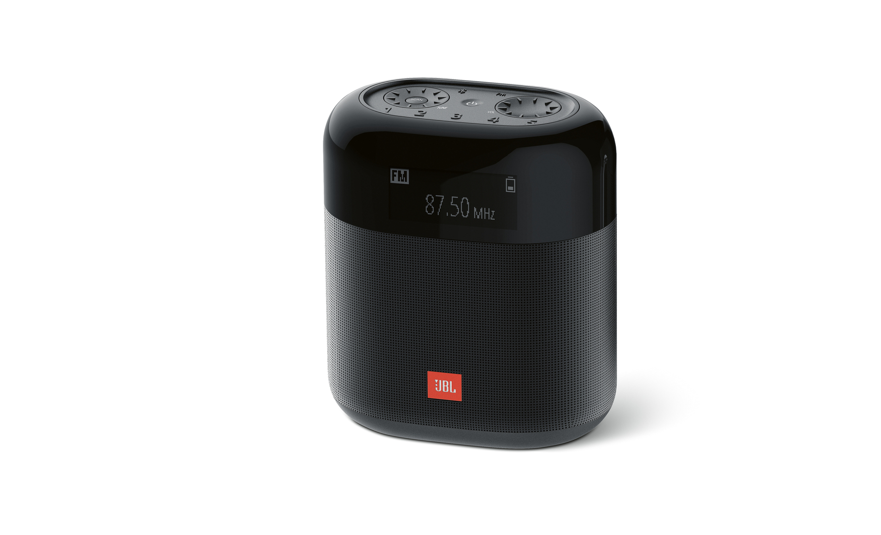 The stylish JBL Tuner XL is a powerful radio with superb sound, Bluetooth and 15 hours of playback. It includes digital DAB and DAB+ radio, plus FM radio. There are five programmable channels which are easy to tune digitally using the relevant buttons. The volume and station scan functions are just as easy to control using the dial on the top. Since the device is waterproof, it can thus be used in the kitchen or bathroom without any issues.