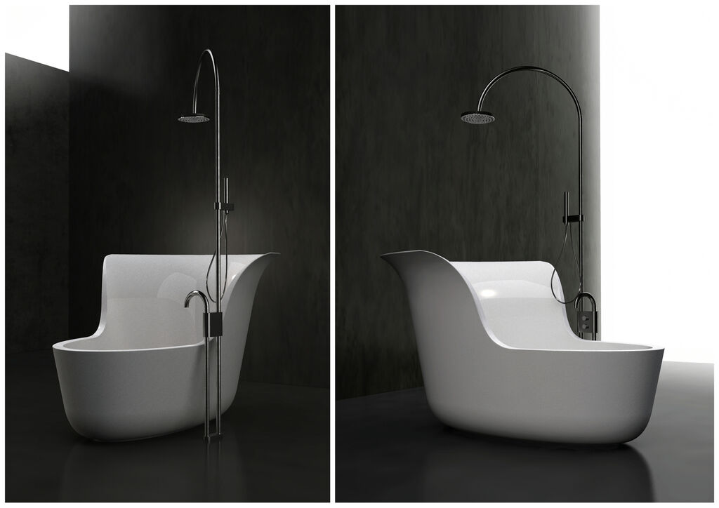 Jena is an up-to-date version of the traditional free-standing bathtub. Its simple smooth form, not cluttered by unnecessary details, and its elegant lines make it fit spacious, contemporary interiors. But Jena is not just a bathtub though. It is also a shower. At one end, the contoured rim is raised in such a way that its height and gently inclined wall keep shower spray within the bathtub. Manufactured with Solid Surface technology and subjected to an additional special treatment, the used material impresses with its velvety surface.