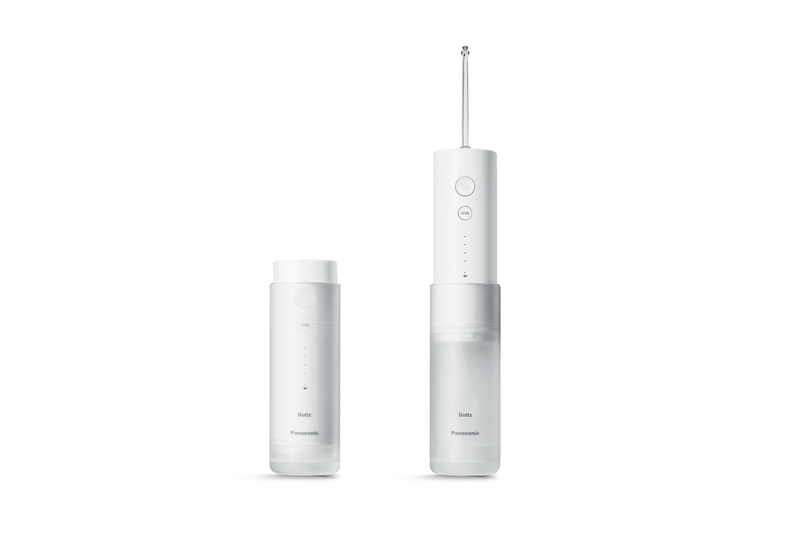 This battery-powered oral cleaner uses ultrasonic technology to gently yet thoroughly clean teeth, gums and periodontal pockets. Its simple shape and the combination of white and transparent components exude cleanliness. The device’s construction centres around its fundamental functions, making it easy to operate. Its light and compact design also makes it ideal for use when on the go or travelling.