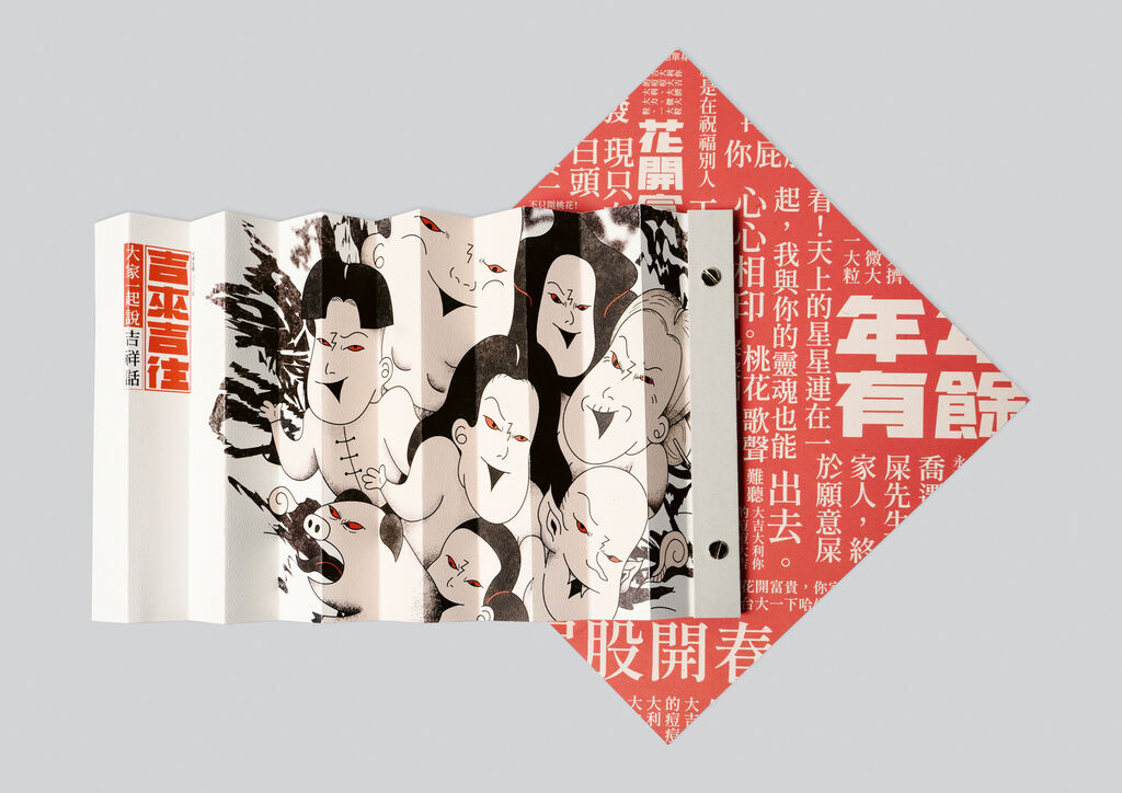 Taiwanese people often use auspicious words to express their blessings during traditional annual festivals, but these terms have become old-fashioned for young people. In recent years, the rise of social networks has produced many new terms. The brand design by Ji Lai Ji Wang combines auspicious words with slang words and presents them using humorous illustrations. In terms of content, the holiday wishes were divided into the three categories of health, interpersonal and love. A variety of eye-catching merchandising products are available, including books, posters, calendars, postcards and notebooks.