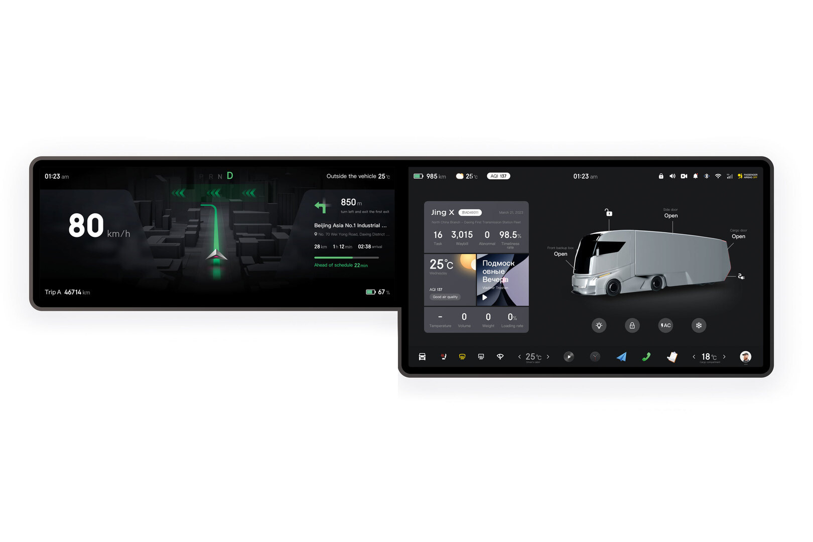 JING-X is an intelligent driving system for trucks that re-examines the entire driver operation process, with a focus on efficiency, safety, and emotion. Utilising artificial intelligence, big data, 5G communication, intelligent sensors, and digital twin technologies, the designed intelligent truck driving system can improve operational efficiency and safety while also providing the emotional support drivers require, making their journey more efficient, safe, and comfortable.