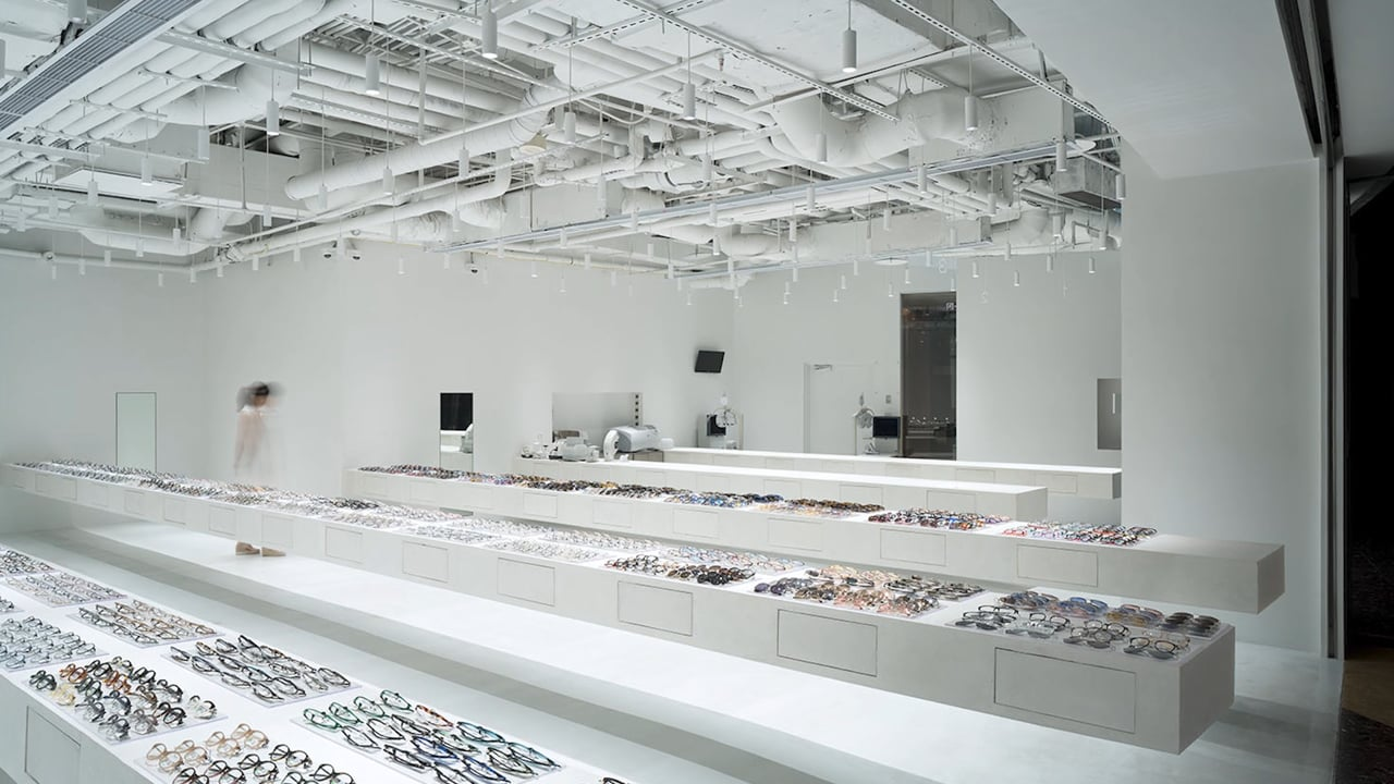 The combination of five large concrete tables and an open ceiling construction lends this shop an impressively puristic aesthetic appeal. Employed in a plain yet subtle manner, material and form attract attention. The result is an invitingly large space of open clarity that allows a well-conceived presentation of individual products. The design thus helps to cleverly pique the curiosity of customers.