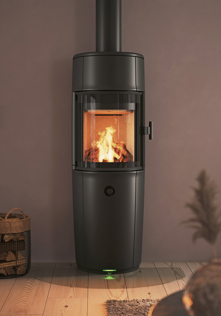 The cast-iron wood-burning stoves of the Jøtul F 170 series have a roughly cylindrical shape that widens gently towards the centre. Integrated into the elegantly rounded front is a large glass door that provides a 156-degree view of the fire. A portion of the stoves’ surface texture is reminiscent of woodchip wallpaper, creating a link to the traditional craftsmanship of cast iron. The Jøtul F 170 series uses intelligent Zensoric technology to optimise firewood consumption and increase energy efficiency.