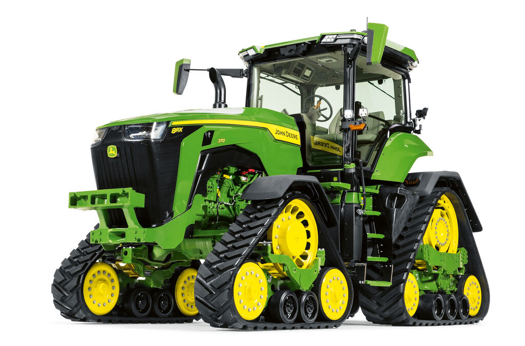 The 8R tractor range includes both wheeled and tracked tractors. The newly designed bonnet and cabin are characterised by a sharp design language that has a chiselled look. The spacious cabin offers good visibility and has an automotive feel thanks to the intuitive control elements and a seat equipped with climate control and a massage function, as well as the choice of colours and materials. The tractors are built with precision robotics and use artificial intelligence for connectivity and autonomous driving.