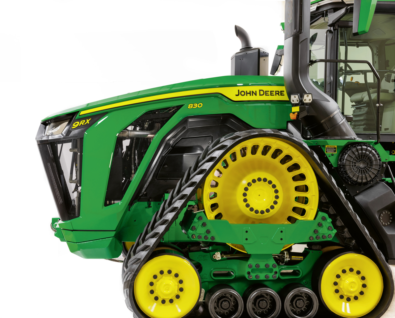 The new John Deere 9RX Tractor enables farmers to cultivate more land with larger implements. Completely redesigned from the ground up, it combines high performance with the latest precision agriculture technology for more efficient work. The design highlights the size and power of the tractor as well as the precision of the integrated technology. This tracked tractor also offers improved visibility, ergonomics and comfort. Thanks to the integrated GPS and automated steering, farmers can traverse fields hands-free.