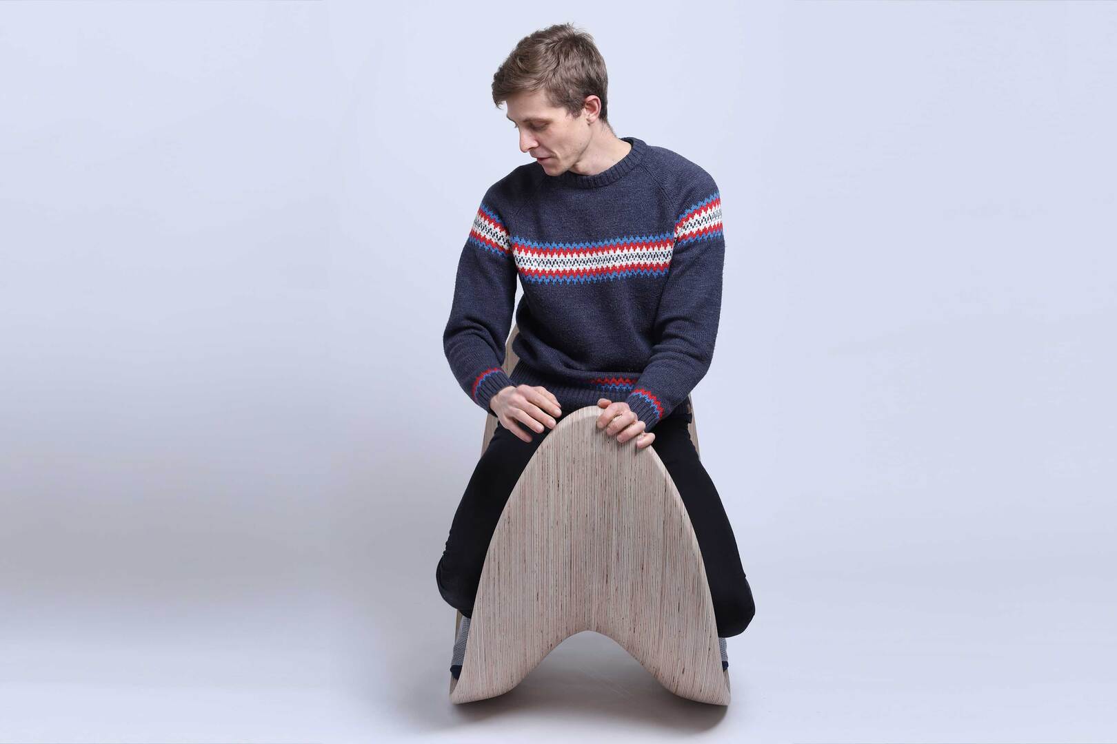 Joy is a rocking chair and a sculptural object that evokes the joyful emotions of a playground. At first, it is not immediately apparent that it is a chair, but once seated, Joy works as a very comfortable and functional rocking chair. The joy of sitting is enhanced with a footrest nook that allows users to keep their feet off the ground. It is also designed for sitting sideways, which adds to the pleasure of chair play and dynamic movement.