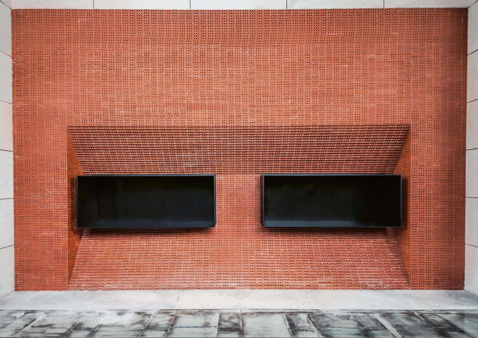 The interior design for “.jpg coffee” boldly addresses the lively target group of people in Zhujiang New Town, one of the three main business districts in all of China. The shop’s simple brick-red facade is all made of jacinth-sintered bricks, which are produced from raw clay. As the colour is simple and harmonious, it forms a strong contrast to the otherwise heavily decorated surroundings in the district. Doing entirely without a logo or any other information related to the two brands on the facade makes the space more pure and architectural.