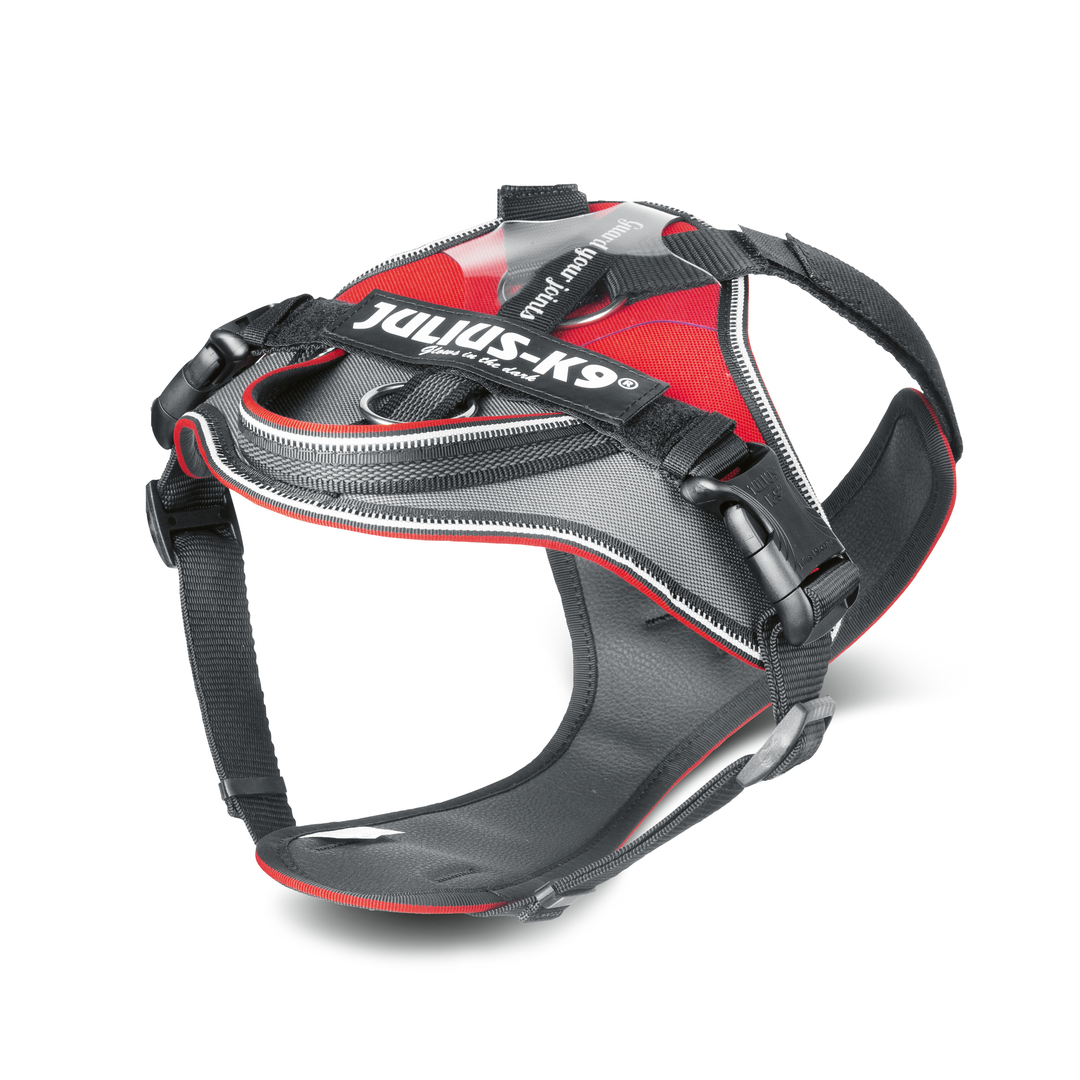 The JULIUS-K9 dog harness has been configured to be particularly easy on the joints. The dog’s sternum is held by an ergonomically designed, arching element. It converges with a well-padded saddle part on the back, which adjusts to the form of the animal and has a sporty appearance. Various colours emphasise the practical handle. Flexible elements have been installed in three places, which respond to even the smallest movements.
