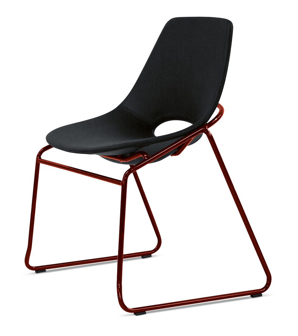 Work environments need to be effective and efficient and their furniture should support different workplaces in the best possible way. The Just chair goes beyond the typical stack chair by meeting more criteria than simple efficiency. It has been designed with special attention to its finish and surfaces and is characterised by high-quality upholstery with a sophisticated recess. Mounted on a simple stable frame, it is suitable as an integral part of an office.
