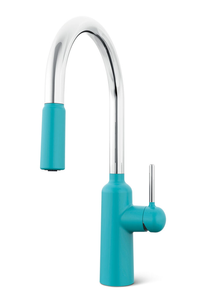 The attractively designed tap provides special colour accents in the modern kitchen and convinces with its easy handling.