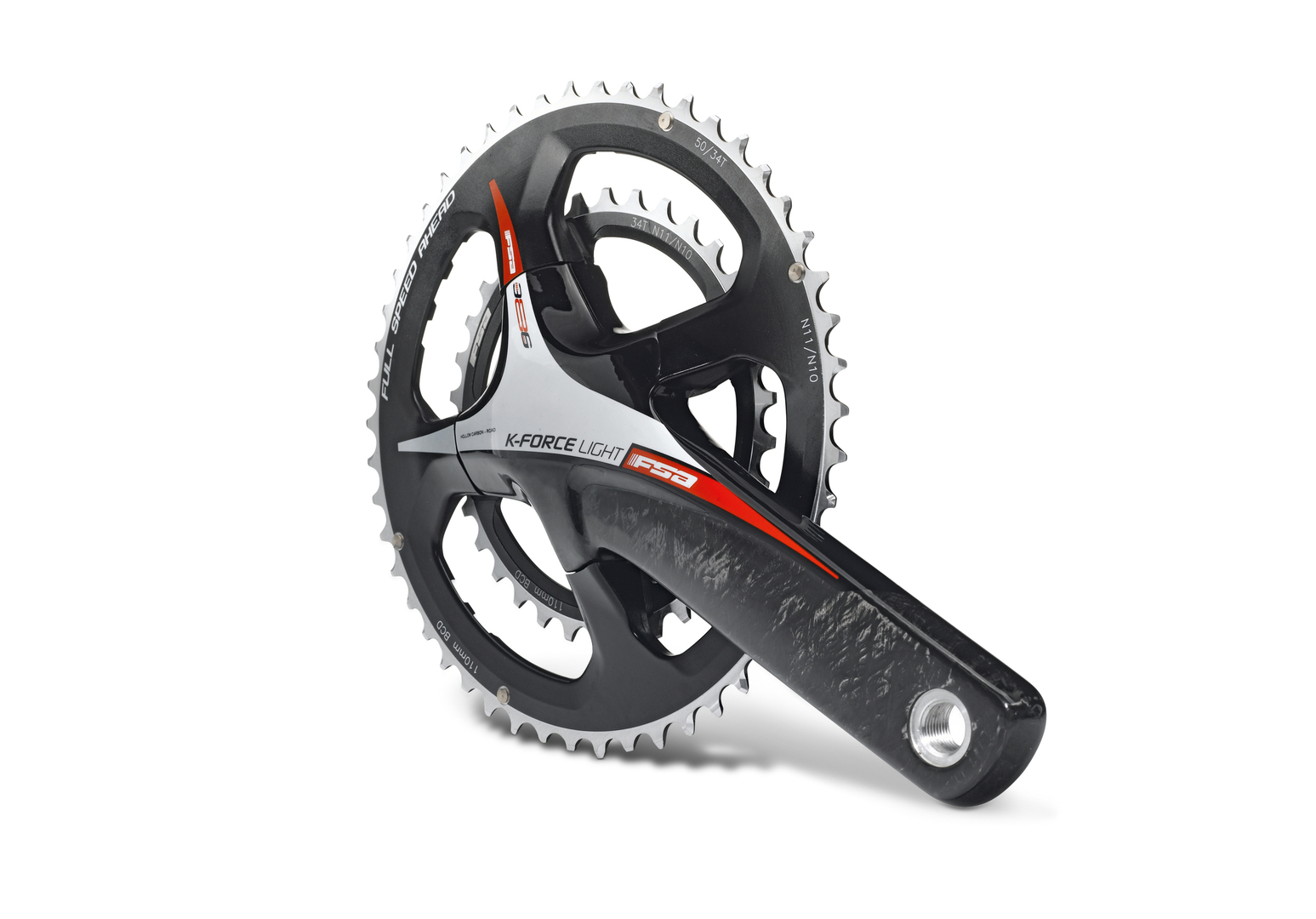 The K-Force series features the latest advancements in carbon composites such as the Hollow Carbon arms with UD Carbon finish. The Ceramic BB30 bearings are the result of innovative metal alloy technology. The new model is especially light and fast, holds AL7075 100 per cent CNC chain rings and AL7075 Torx T-30 alloy chain ring bolts. Contemporary graphics in red or black emphasise the racing heritage of the model line.