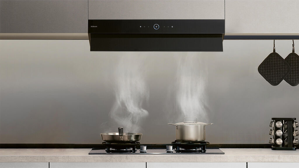 The K1-Pro extractor hood was developed for flush installation in wall units. Its ultra-flat design with three-sided sealing effectively prevents cooking vapours from escaping and at the same time preserves the workspace: the user can move freely above the cooking surface, thereby reducing head bumps. The AI-controlled fume monitor automatically adjusts the suction power, enabling touch-free operation. The K1-Pro has a modular design, which reduces the consumption of resources in production.