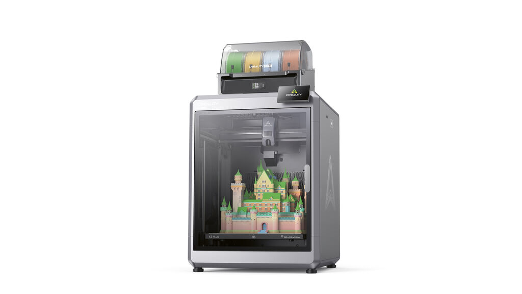K2 Plus Combo is a 3D printer with an integrated CFS multicolour system for up to 16 colours, which can be scaled up to four units. The device combines automatic filament feed, storage and drying and is also suitable for larger objects thanks to its generous constructed space. RFID material recognition, automatic levelling, AI-based calibration and camera monitoring ensure a stable printing process for reproducible high-quality results, while precise servomotors ensure exact motion control.