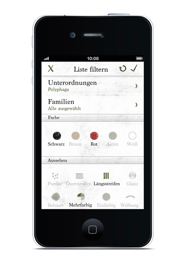 Worldwide there are more than 350,000 different species of beetles. Many of them have to be correctly identified by foresters. “Käferkunde” (the study of beetles) is a very appealing and attractively designed app which allows users to learn about beetles, look them up and identify them via filter function using characteristics such as size and colour. Users can enter the beetles they encounter via photo function and GPS into an integrated interactive map and thus show others which beetles they have already identified correctly.