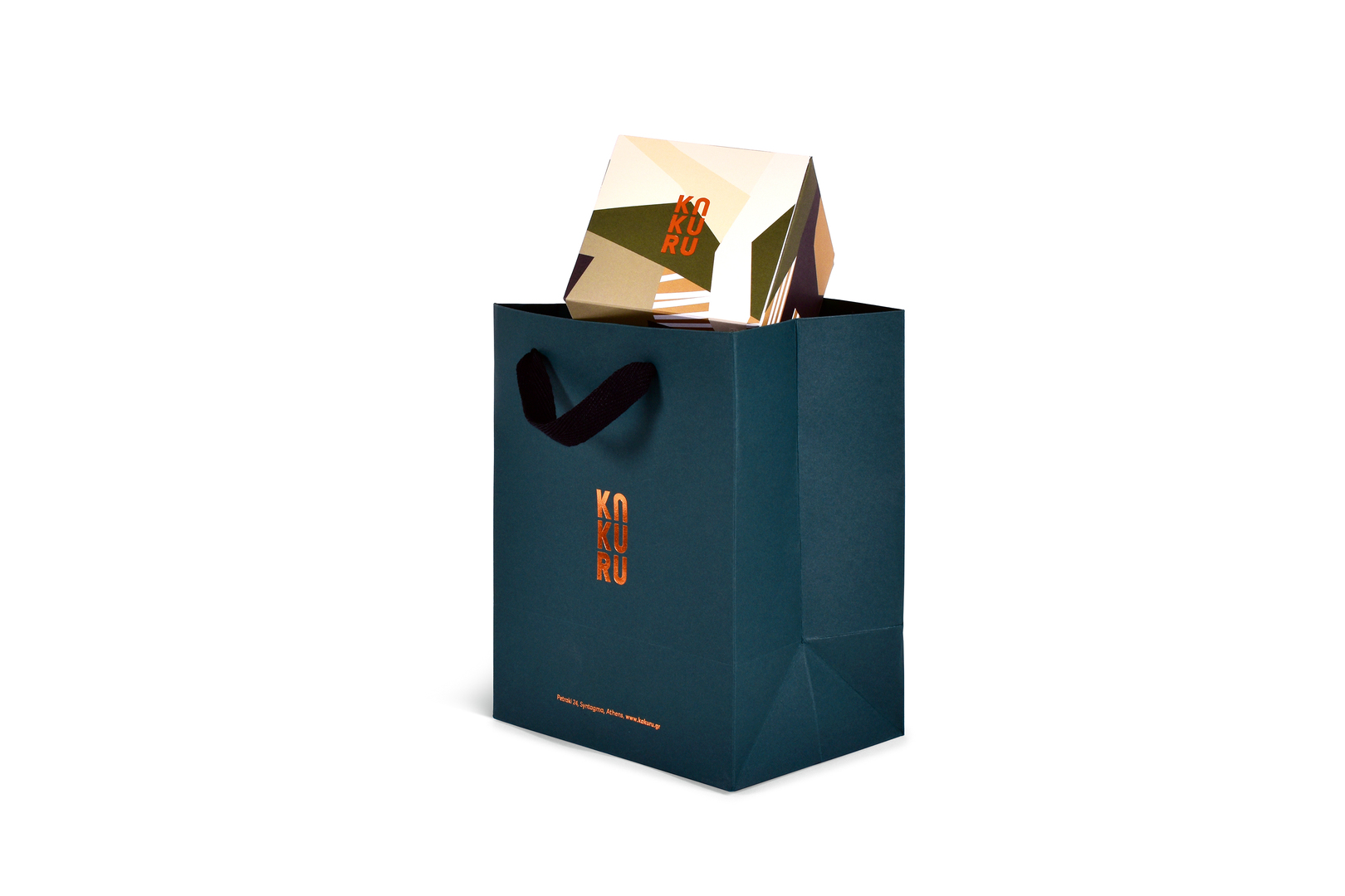 The visual appearance of the Greek jewellery brand Kakuru plays with colours and shapes very effectively. The artistically appealing word mark in particular sets itself apart from the black background. Inspired by transformation processes, a variety of graphical patterns are used, which decorate the stationery, the brochures and packaging. Based on the pieces of jewellery, the individual components of the corporate design are characterised by a distinctive aesthetic as well in order to convey the creativity of jewellery designer Elina Kakourou.