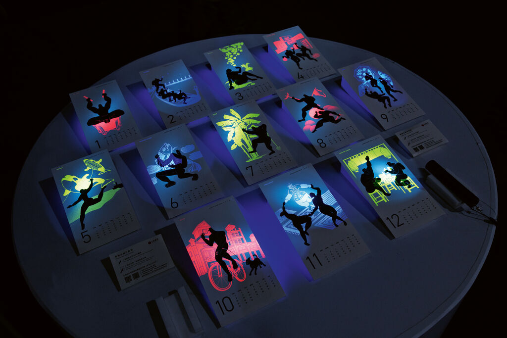 The core concept of the Hand-Heart Design Firm is "visualising the invisible value". The multifaceted design "Kaoshiung Pose" embodies this approach. The figures, which are printed using special ink, show representative images of local culture.