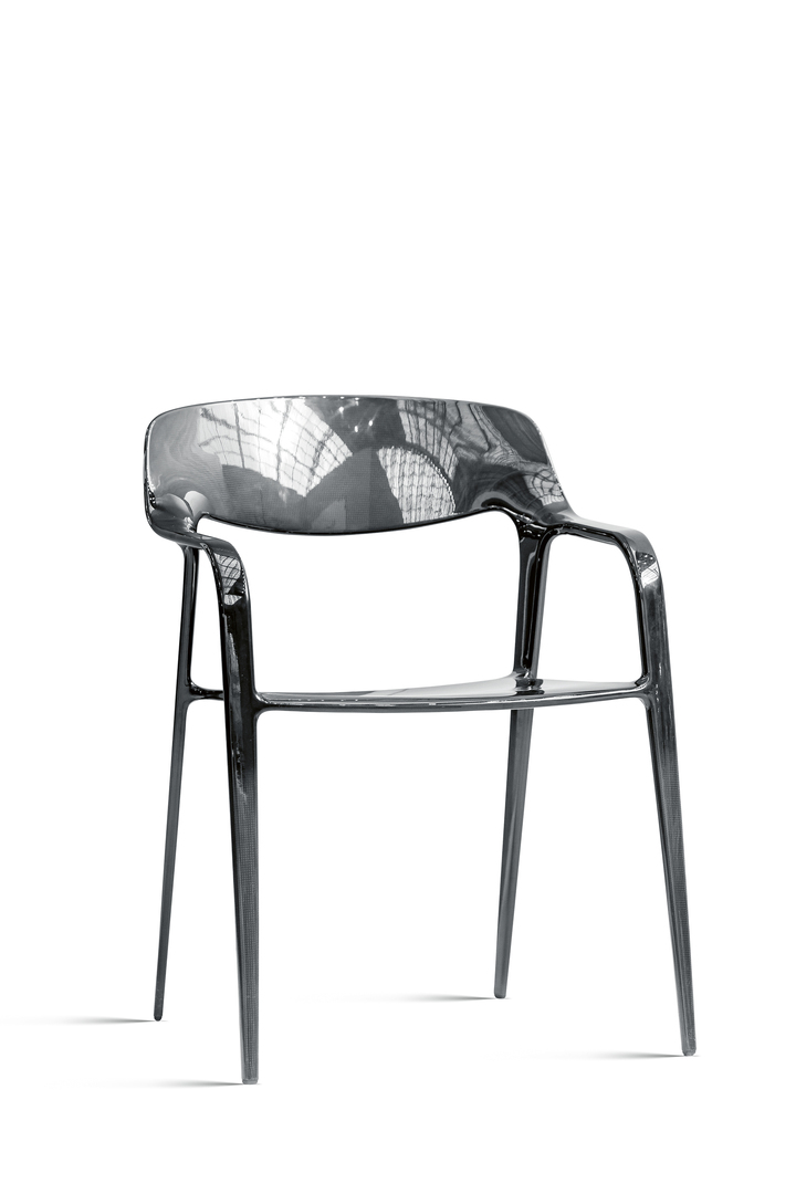The KARBON chair is a reinterpretation of the lightness and resistance of carbon fibres. The product is the result of testing new manufacturing processes and materials. Its iconic shape and exclusive feel ensure that sitting on it becomes a novel interaction with form and material as well as an unusual experience. The chair is extremely stable and light at the same time.