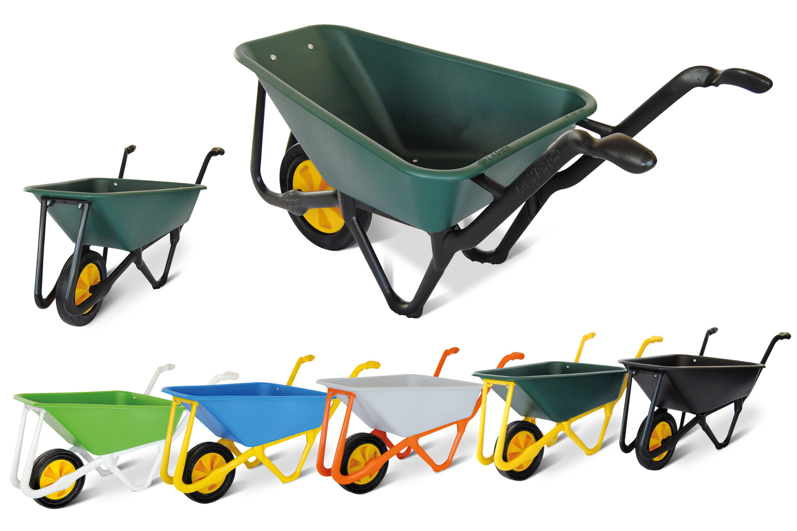 The KARRO wheelbarrow is light, reliable and eco-friendly. Despite its low weight of only 8.5 kg, it has a high degree of stability both in a standing position and during use. Due to its low centre of gravity, its ergonomic handles and the functional roll motion, effortless transport is possible. The wheelbarrow pan is highly resistant to chemicals and meets food standards – it can therefore be used in the garden as well as in the food, building and agricultural industries. The wheelbarrow is available in various colour combinations and is manufactured from fully recyclable plastic.