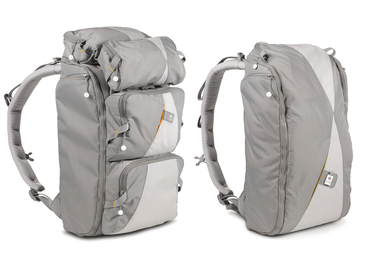 The InsideOut 300UL is a lightweight, medium-sized photo bag that can be converted to a backpack. It is designed to fit basic photography gear with numerous inner pockets for various accessories. By unhooking the front cover and turning the bag inside out, it quickly becomes a large outdoor backpack without having to empty out the outer pockets in the process, providing 40 per cent more volume.