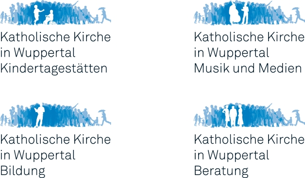 The logo for the Catholic Deanery of the City of Wuppertal is centred on Saint Lawrence and the Catholic community. Saint Lawrence distributed the property of the church to the poor, thus revealing community to be the real treasure. This tradition forms the basis for the design concept, which aims to convey a modern image of pastoral care. In Catholic tradition, the colour blue represents Heaven as well as intellectual transparency and clarity. The logo can also be flexibly adapted to other application areas within Wuppertal’s Catholic parish.