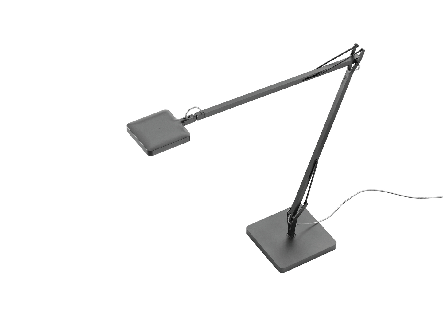 The new table lamp Kelvin LED stands out because of its elegant design and the innovative lighting source made using 30 Top LEDs that guarantee excellent illumination, visual comfort and low energy consumption. The lamp is available in a white gloss, black gloss and charcoal grey matt finish. Total illumination control and the ultra-flexible swivel system also make this lamp suitable for professional purposes. It fully complies with all current European and national directives.