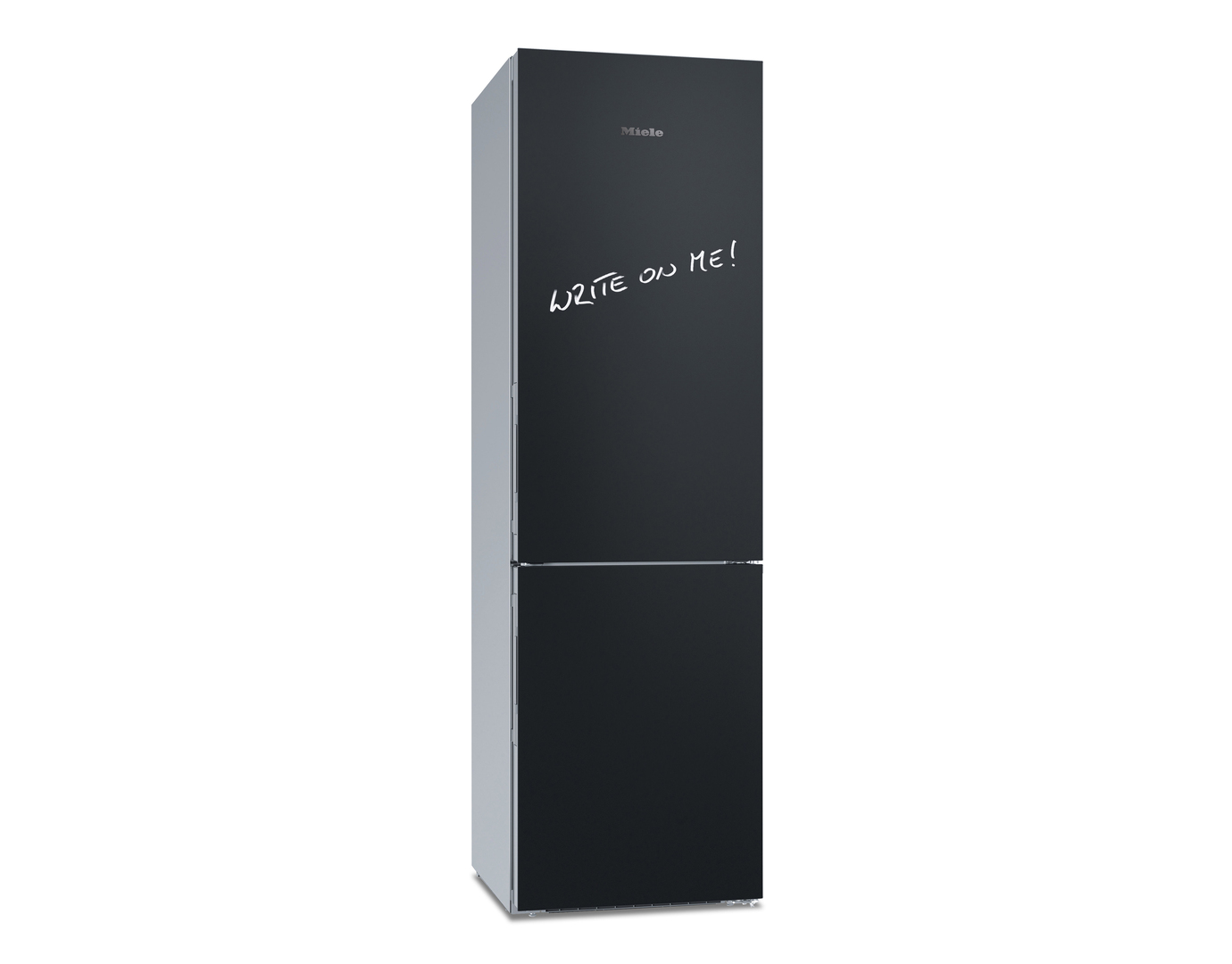 With its concise materiality, by which means the front can also be used as a blackboard, this fridge-freezer invites interaction and thus receives an emotional component.