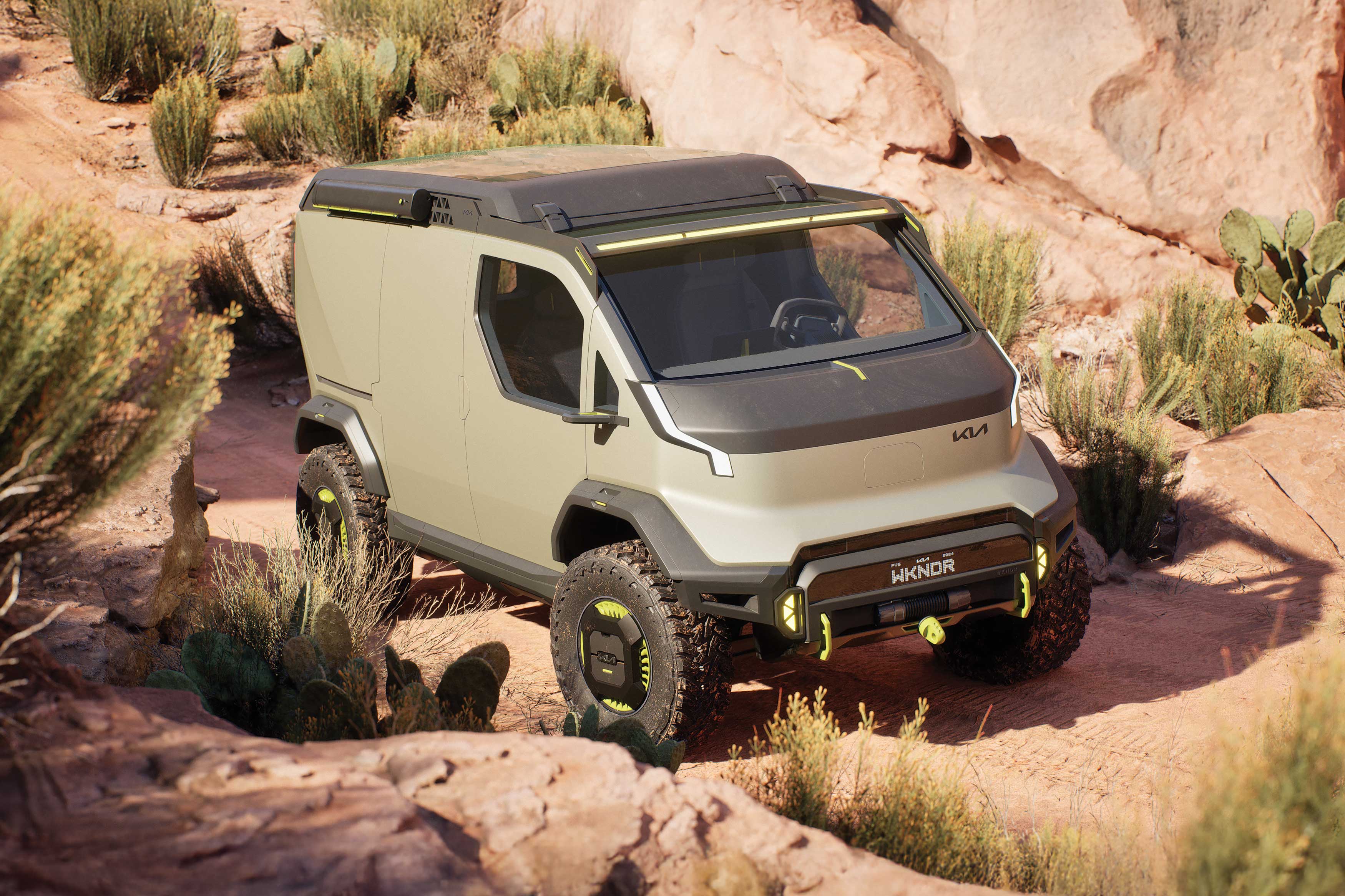 The PV5 WKNDR Concept is based on KIA's recently debuted line of EV PBVs. Dreaming big but travelling smart, WKNDR is a highly competent van that enables self-expression wherever travels lead you. Lifted and equipped with off-road tyres, it is the ideal escape pod for long weekends in nature. The WKNDR features a highly flexible and adaptable interior that can be efficiently customised to maximise space and function. The van's 'gear head' feature is the first-of-its-kind storage solution that provides an off-board, sheltered storage space for gear when the vehicle is stationary. This allows for maximum utilisation of the interior space while still offering easy access to the gear stored outside. The 'gear head' can also be transformed into a mobile pantry for cooking enthusiasts who want to 'cook with a view'. Truly self-sufficient, the PV5 WKNDR features solar panels and unique hydro turbine wheels that recharge the batteries for multiple uses. An onboard compressor handles inflation needs ranging from adjusting tyre pressure on the trail to inflating space-saving mattresses when setting up camp for the night. The interior 'beyond organisation' rail system saves time by making setting up for new adventures as easy as plug-and-play. Red Dot Award: Design Concept | Concept | Cars and Motorcycles