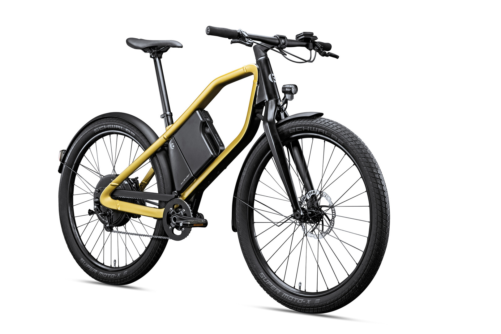 The rechargeable battery of the e-bike Klever X is integrated into the circumferential frame in a harmonious as well as conspicuous manner, demonstrating a successful and unique design.