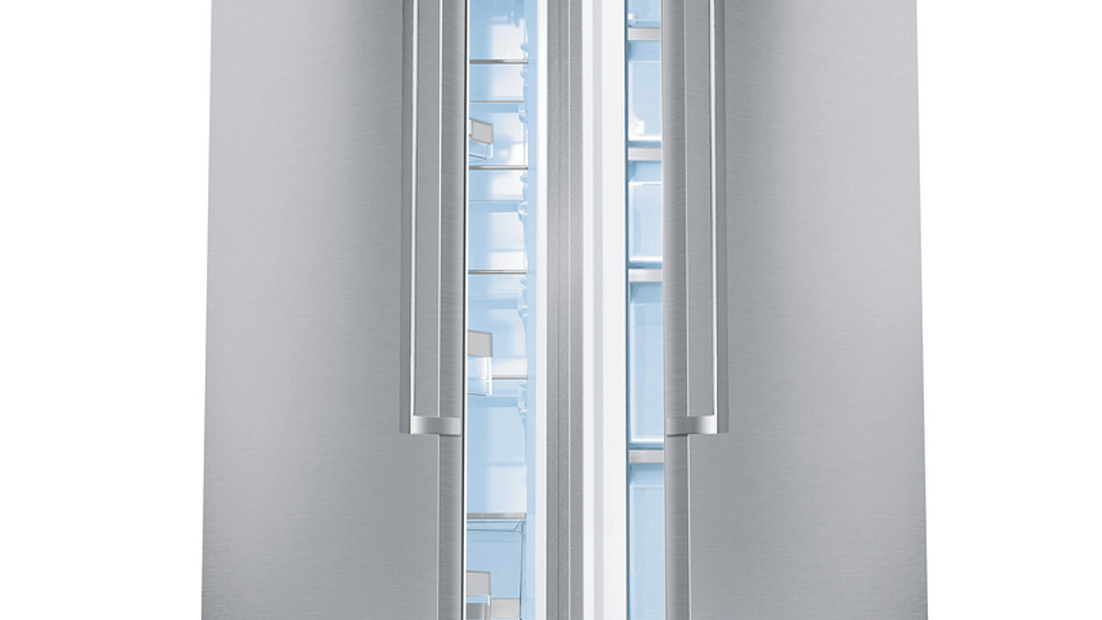 The design of the body of this multi-door refrigerator is characterised by the use of real materials. The doors and drawers are made of ColorGlass, and the handles are completely made of brushed metal. Thanks to the double door, chilled goods are ergonomically easy to reach and are clearly arranged at eye level. The touch control display behind glass enables easy operation, while the flexxibleStorage-system optimises the use of the interior space.