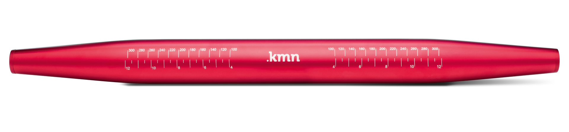 The rolling pin is made of aircraft grade, anodised aluminium. With its tapered shape, the pin rests well in the hand. Its hollow core makes sure that the weight is just right; it is neither too heavy nor too light. The anodised surface, which comes in red, blue, slate and black, features laser engraved graduated measurements in both inches and millimetres. This allows rolling out dough to just the right size. In addition, it stays cool after being chilled to keep butter from melting into the dough.