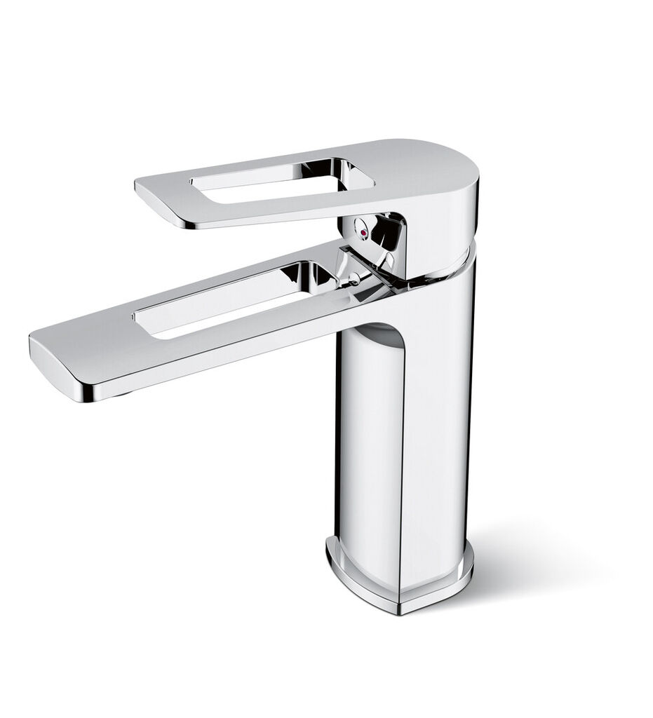 The KNB basin mixer visually surprises with characteristic openings that not only complement the straight-lined main body, they also fulfill a functional purpose.