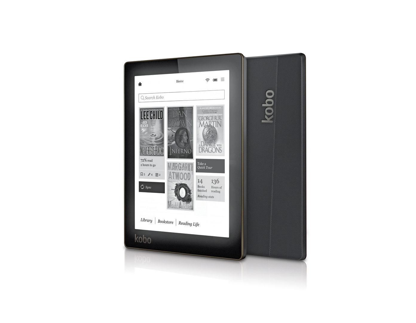 The Kobo Aura is a beautifully designed e-reader with integrated front light. It stands out with its high-resolution frameless display and, thanks to innovative technical features, depicts e-books without any shadow effects. The unit has a battery life of up to two months and a storage capacity of 4 GB for 3,000 books, expandable up to 32 GB with a microSD card.