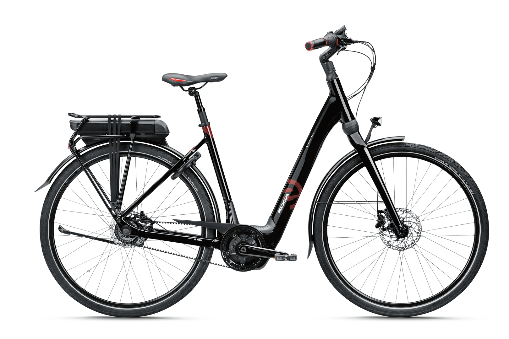 The KOGA E-Nova EVO is a modern city and touring e-bike with a stiff, lightweight frame. It offers a comfortable riding experience and has a low, wide step-through, very good riding characteristics and a variety of ergonomic components such as the front suspension, adjustable stem and anti-slip pedals. Its high-performance Bosch Active Plus mid-drive motor is barely visible and fully integrated into the frame. The low-maintenance belt drive converts the rider’s energy directly into speed.