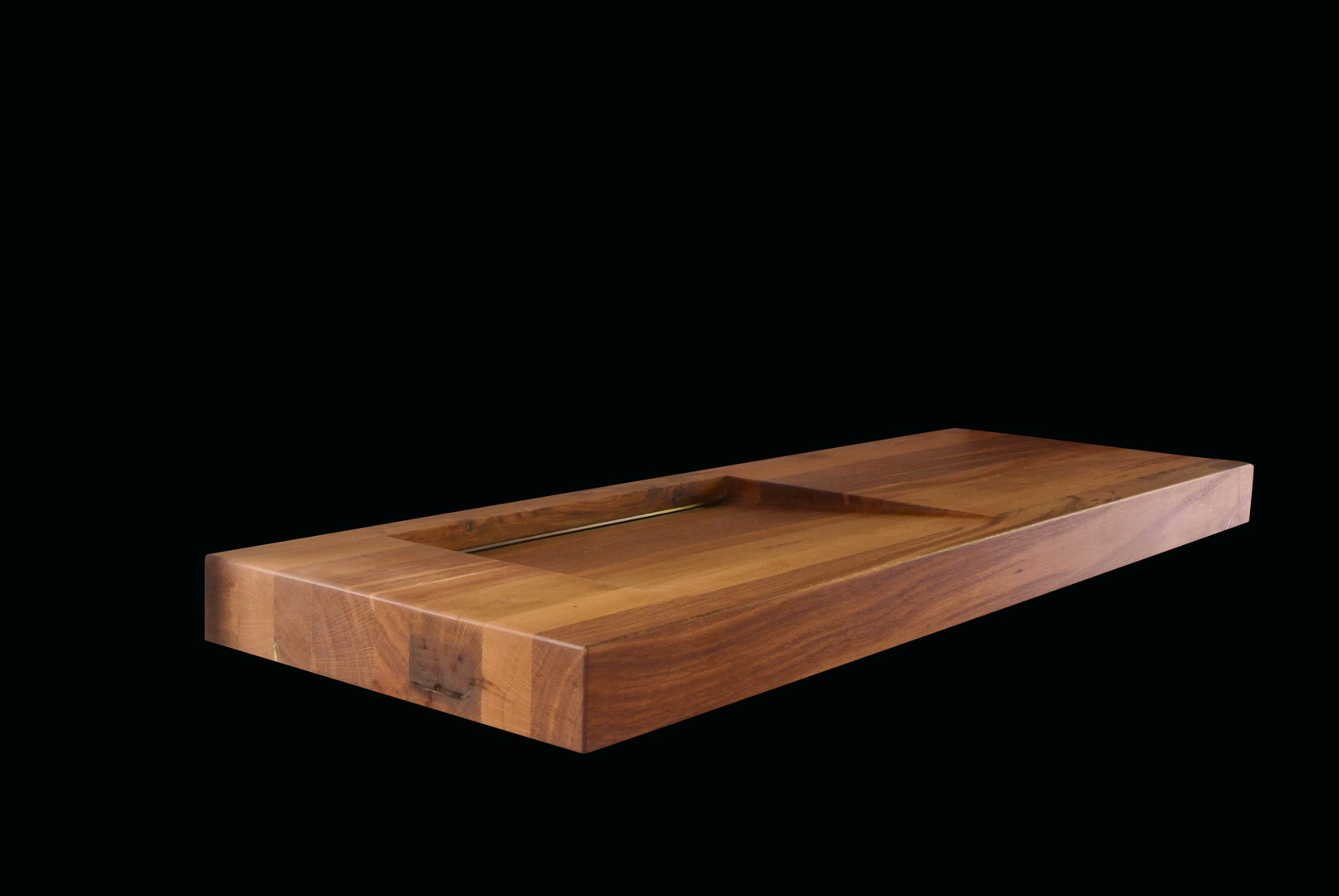 The washing board Kollengass Anno 1740 is as “durable as an ancient oak”. The heartwood is obtained from the dismantling of old timbered houses. This is what gives each washing table its unique structure and colour shade. The timbers are hand-brushed with great craftsmanship and their natural structure is brought to the fore with a special sealing finish. The water supply and drains are covered and, in combination with its wall mounting, make the washing table appear to float.
