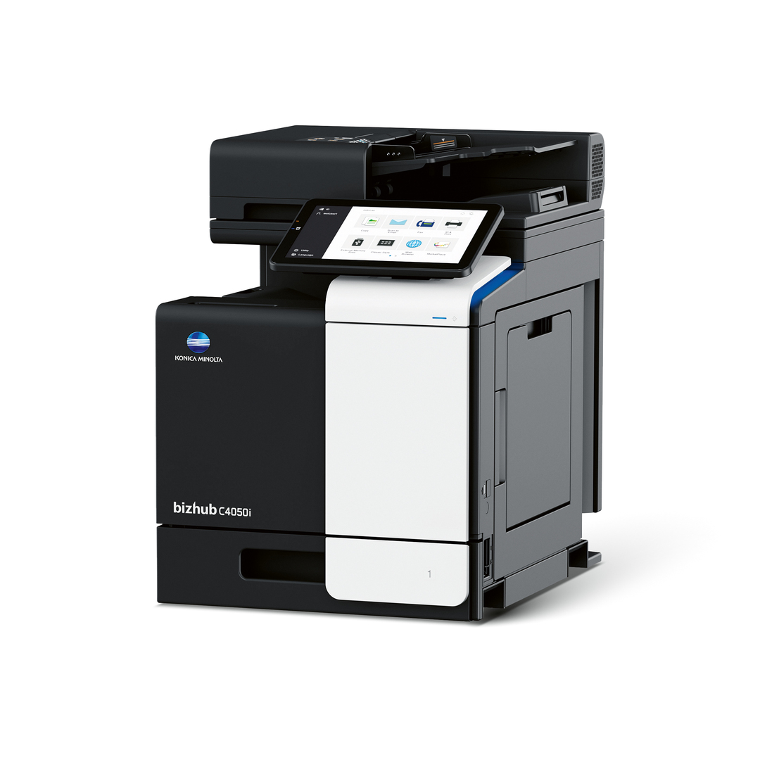 The Konica Minolta bizhub C3350i and C4050i multifunctional printers are equipped with a modern, easy-to-understand user interface, so that no training is required. They are characterised by a slim, reduced design with pleasantly rounded edges, which is complemented by a seemingly floating panel and ambient lighting. The printers are operated through the tiltable display or voice input. They consume little energy, work quietly and require hardly any time to warm up.