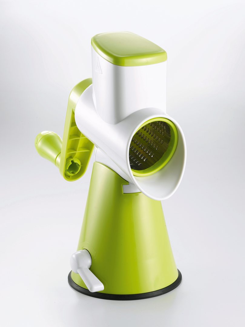 Crisp colours, a compact design and consistent functionality characterise this drum grater.