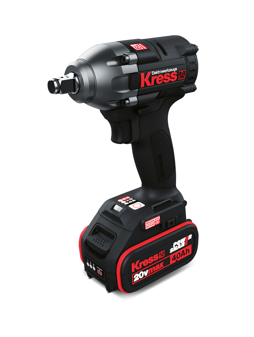 The Kress 20V BL LI is equipped with a brushless electric motor reaching a high torque of 300 Nm, yet reducing wear and improving durability. With its compact design, the tool is suitable for work in the tightest of spaces. Its auto-stop technology ensures safe driving and loosening of screws. The surface texture of the materials applied guarantees longevity, facilitates handling and also gives the wrench a contemporary appearance.