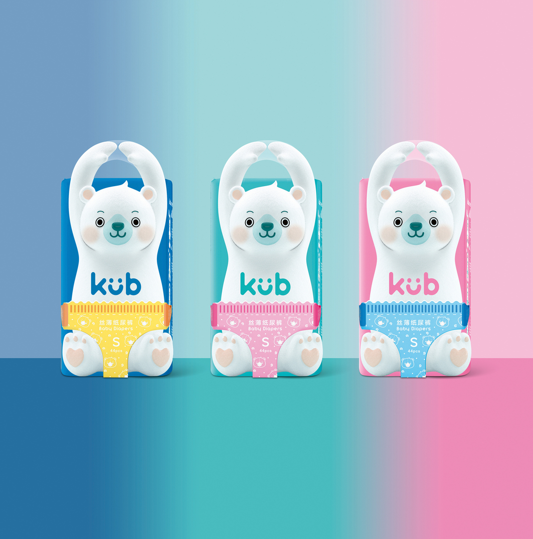 In an amusing way, this concept lends added value to a Chinese nappy product. Designed for mothers, who are usually the ones to go shopping, the packages attract attention through a large bear wearing a cardboard nappy. The bear’s cute look and fluffy texture is paired with a three-dimensional effect and fresh colours to enhance the product. In addition, the bear’s raised arms can be used as a handle. The handling of each pack is self-explanatory: the nappy fastening can simply be torn open to remove the contents.