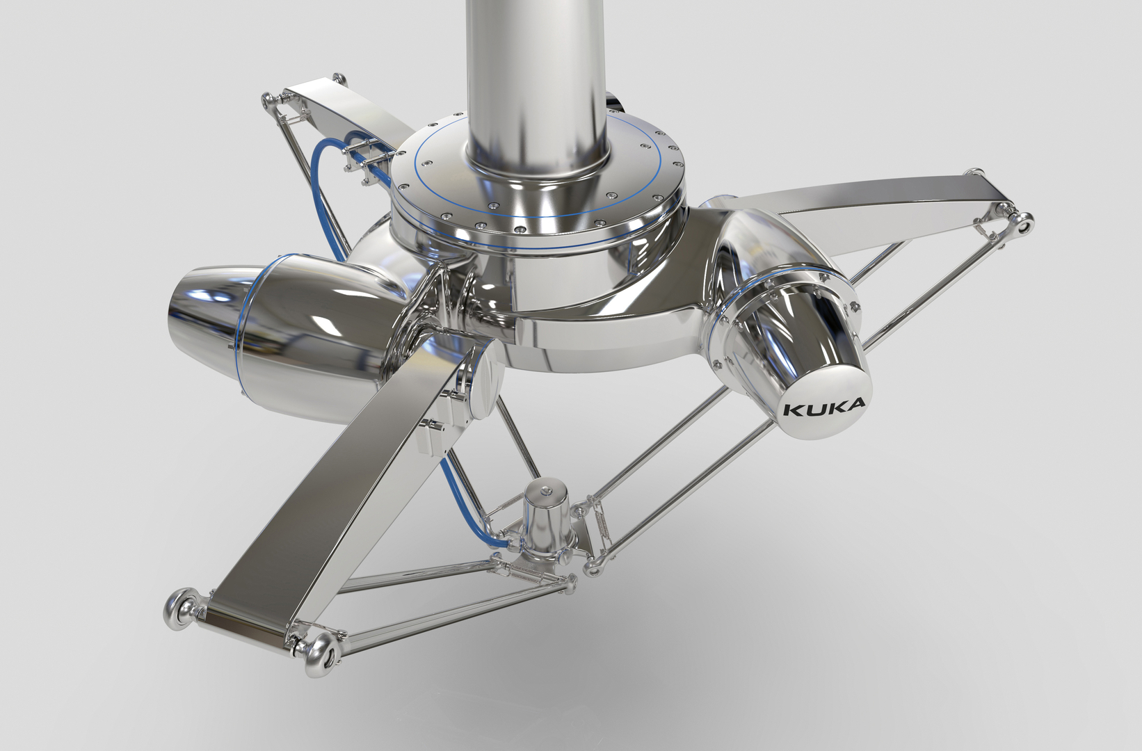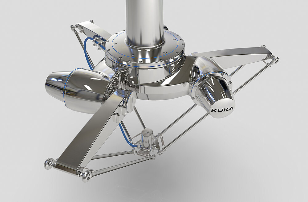 The delta robot KUKA KR 3 HM is utilised for the handling and picking of goods in areas with stringent health and safety requirements, including but not limited to food, medicine, household chemicals and electronics. The corrosion-resistant, highly polished stainless steel construction with dirt-repellent surfaces keeps germs at bay and can be cleaned under high pressure. All device surfaces are curved so that cleaning and disinfecting agents can drain off unhindered and no puddles remain on the device.