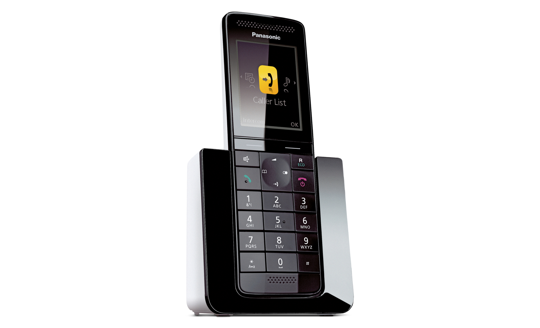 The KX-PRS120 DECT cordless phone is as slim as it is compact. The handset is narrow and is comfortably to hold. Its clear, purist design is appealing due to the timeless black and white contrast which is also to be seen in the base station. The clearly defined keys on the flat face of the phone make dialling very easy.