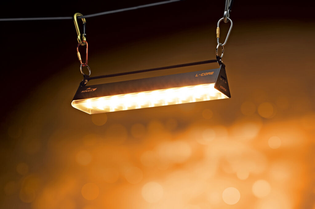 The battery-powered L-Core lantern provides a wide array of lighting options for indoors as well as outdoors. A dimming dial makes it easy to choose from different lighting settings, while the CR 180 lamps provide soft and glare-free illumination. Both ends are equipped with eyelets and carabiners, making it possible to connect several lanterns with one another. In addition, the carabiners serve as flexible fastening mechanisms. L-Core is available in two different colour schemes.
