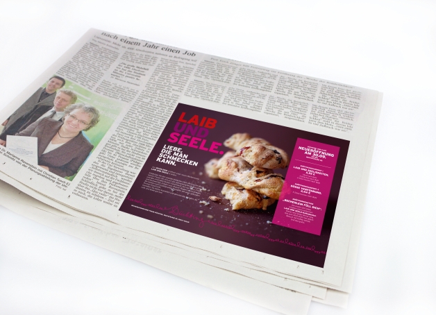 The corporate design for Laib und Seele unites craftsmanship and lifestyle. The powerful typography employed provides a down-to-earth appearance, while the use of intense colours appeals to lifestyle-oriented tastes. Illustrations inspired by the art of pastry-making underline the creative facets of this handicraft, conveying an appealing overall look. The unique design parameters pervade the brand’s entire communication range – from interior design, external communication and staff uniforms to menus, coffee-to-go cups, coffee tins, paper bags and pastry boxes.