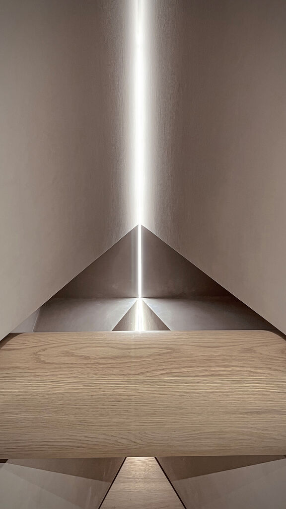Today’s showrooms do not merely serve the purpose of presenting products – ideally, they also entice visitors into a brand world they can experience with all their senses. The LAK Concept Store is emotionally charged, holistically implemented and conceived to appeal to all the senses. Its designers were tasked with the challenge of presenting the material and spiritual properties of wood in an intuitive way, while forging a connection between those properties and the company’s brand values and products. The result is an exciting architectural concept: “The entire room radiates remarkable aesthetic appeal. Movable walls make it possible to constantly restructure the space, and a well-thought-out lighting design provides very subtle accentuation. Even the details make the connection between the natural material and the brand’s products tangible – texture and wood are perfectly paired,” said the jurors. To break away from the stereotyped architectural construction of showrooms, the design team combined philosophical wisdom and classical music compositions to engender a new “spatial symphony”. The intention of this multisensory approach was to showcase the company’s breakthroughs in an emotive way that allows visitors to embrace the exhibits with all their senses and feel the poetry of the natural material of wood. Flexible architecture also permits the regular reorganisation of space inside the LAK Concept Store. There are 10 triangular islands displaying various types of European wooden flooring. At the centre of the room stands a rectangular table with drawers containing product samples and plenty of space on top for their presentation. At the touch of a button, the tabletop can be pulled apart and expanded for special presentations. One particularly beautiful feature involves the cylindrical elements integrated into each end of the table. Designed to look like tree trunks, they can be pulled out by curious visitors. Moving in to take a closer look, the dedication to detail is clearly evident in the LAK logo engraved onto the drawer handles. The exciting concept of using LAK’s own products as presentation surfaces and elements, so as to macroscopically put them in the spotlight, as well as the designers’ incredible spatial awareness, impressed the jurors on all counts.